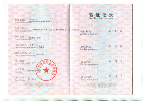 信息安全管理體系認證證書(正本英文)